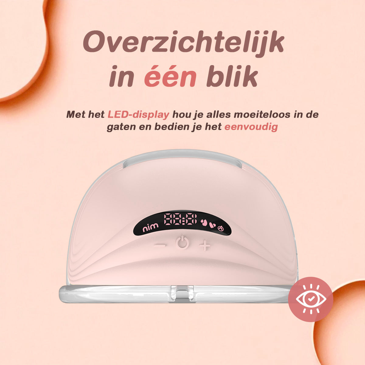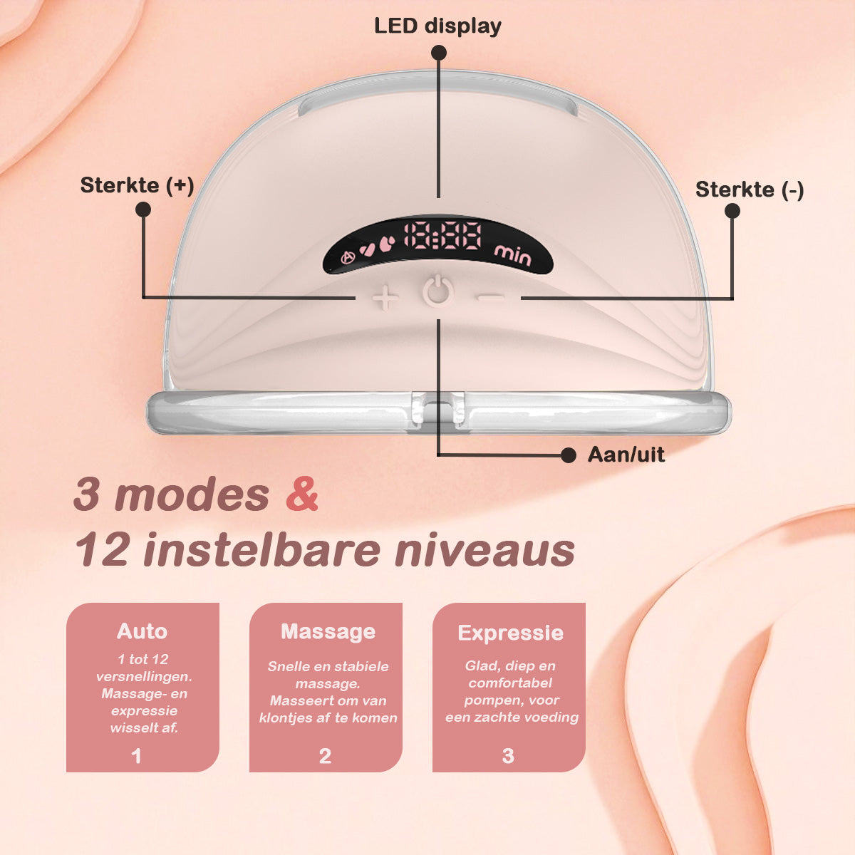 Met het LED-display zie je in één oogopslag tijd, modus en zuigkracht. Je wisselt makkelijk tussen de massage-, stimulatie- en kolfmodus om het meest comfortabele ritme te vinden.