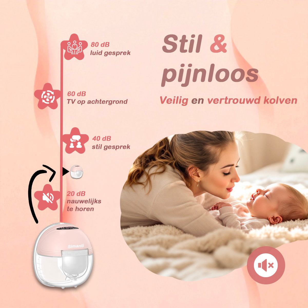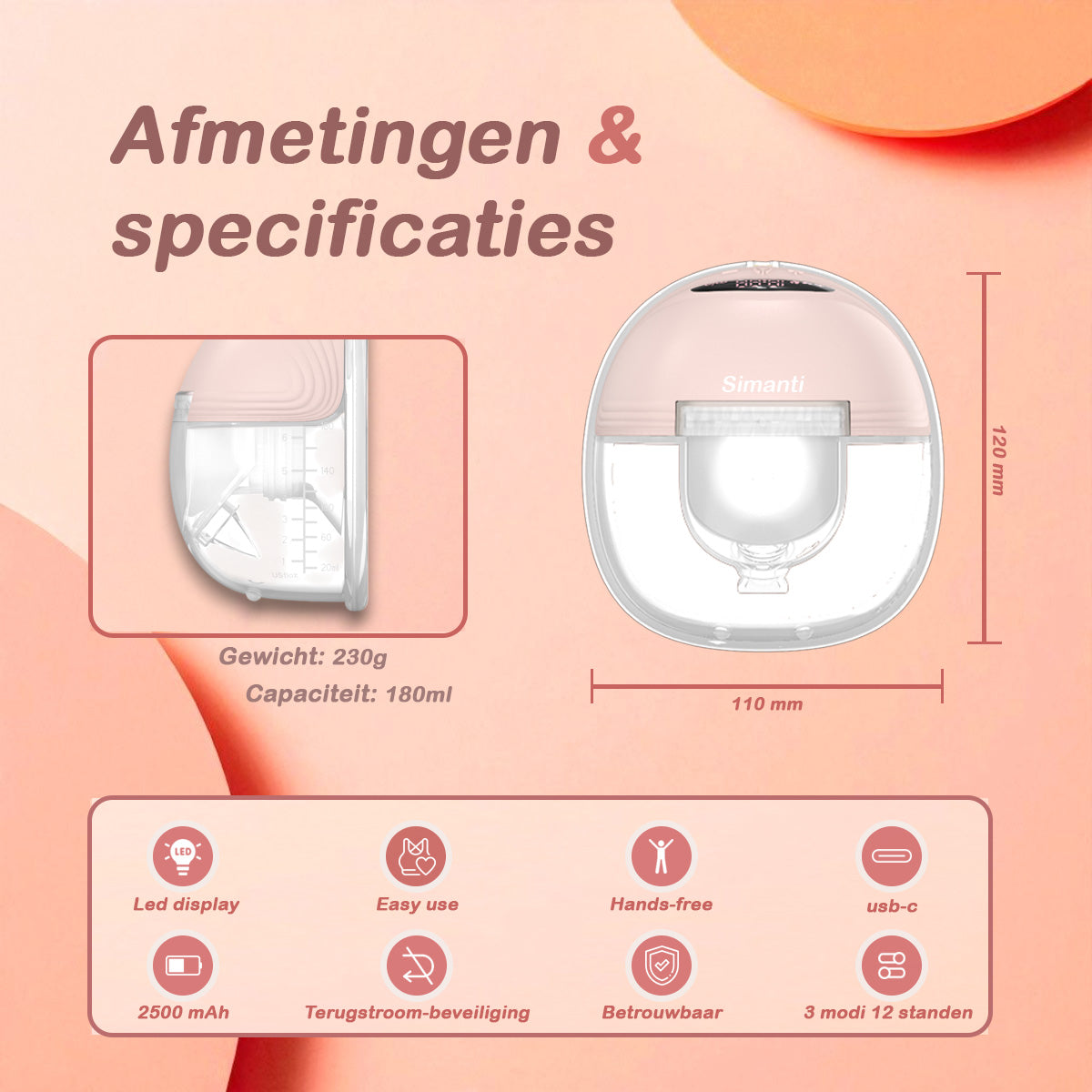 Borstvoeding geven is bijzonder, maar vraagt ook om flexibiliteit. Met de Simanti Elektrische Draadloze Borstkolf kolf je handsfree, stil en discreet – ideaal voor thuis, op je werk of onderweg. Dankzij het ergonomische ontwerp en de lichte pasvorm zit de kolf comfortabel in je bh en houd je je handen vrij voor andere dingen.